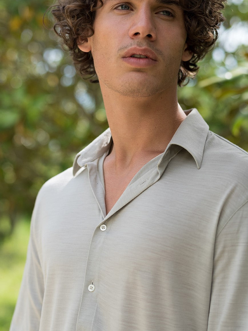 Wendon is a long-sleeved shirt cut from fine 100% Absolute Merino jersey with unrivaled comfort. Its soft, narrow collar and rounded bottom immediately distinguish it from classic shirts and make it both elegant and casual.