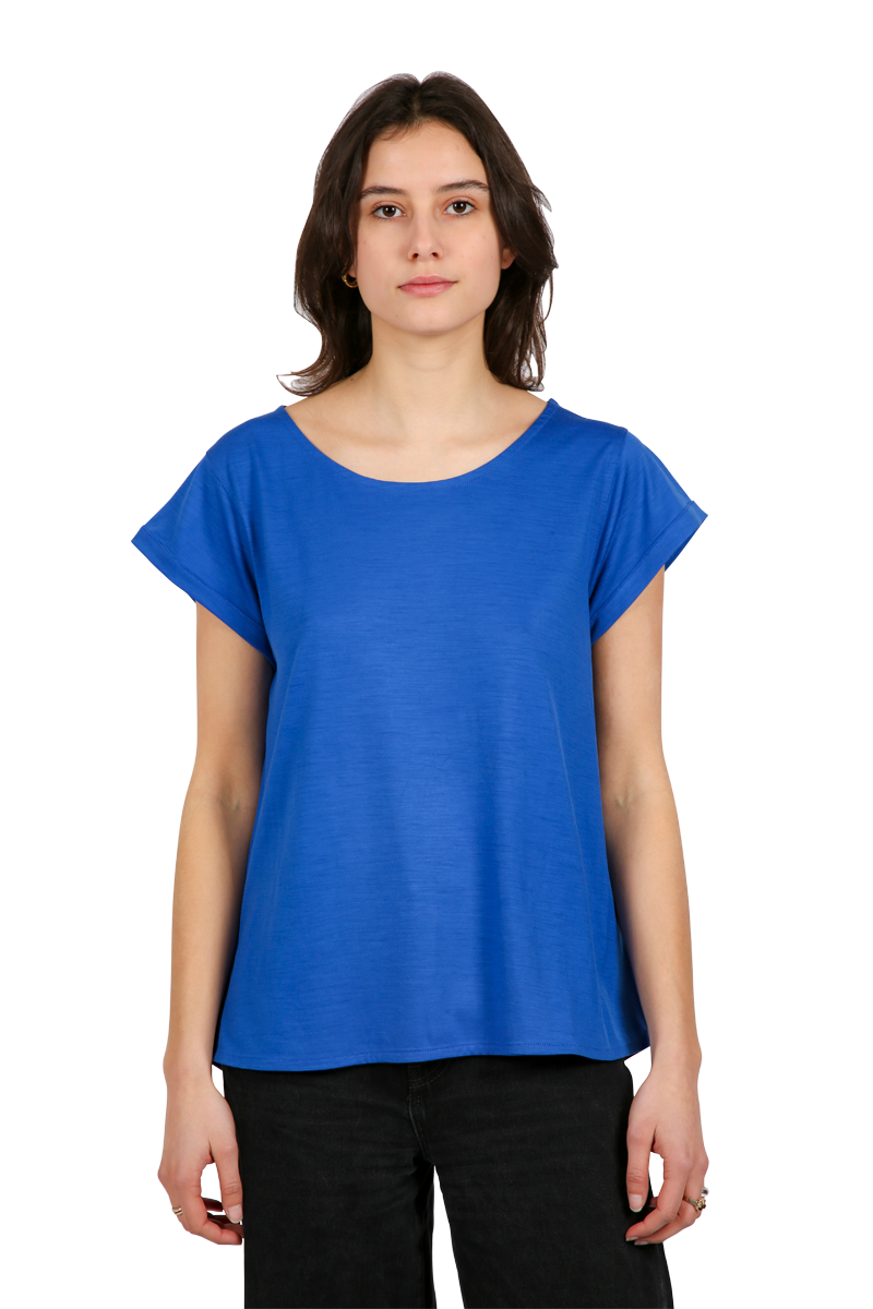 Avec son col rond ouvert, ses ourlets soignés sur les manches, et sa coupe évasée et arrondie, le tee-shirt Clyde offre une allure élégante et originale.