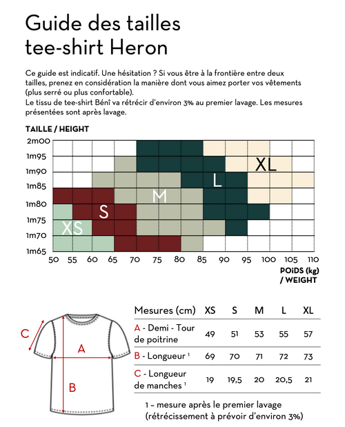 Conçu pour être porté au quotidien, le tee-shirt Heron sera aussi votre meilleur allié pour tous les sports car il est évidemment respirant, thermorégulant et lavable en machine.
